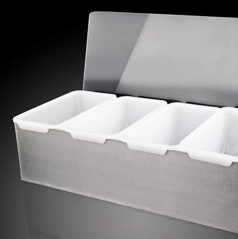 Wholesale Seller Container Compartment Food Grade Steel Plastic Condiment Rack Masala Salad Pizza Topping Lid Storage Box