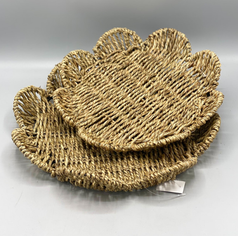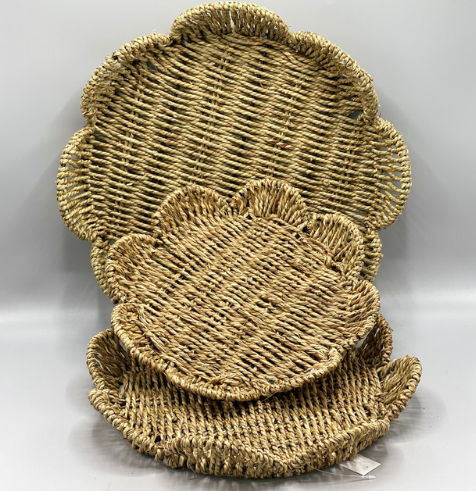 Wholesale Set 3 Seagrass Serving Tray Flower Shape Decor Items Made in Vietnam - SISU