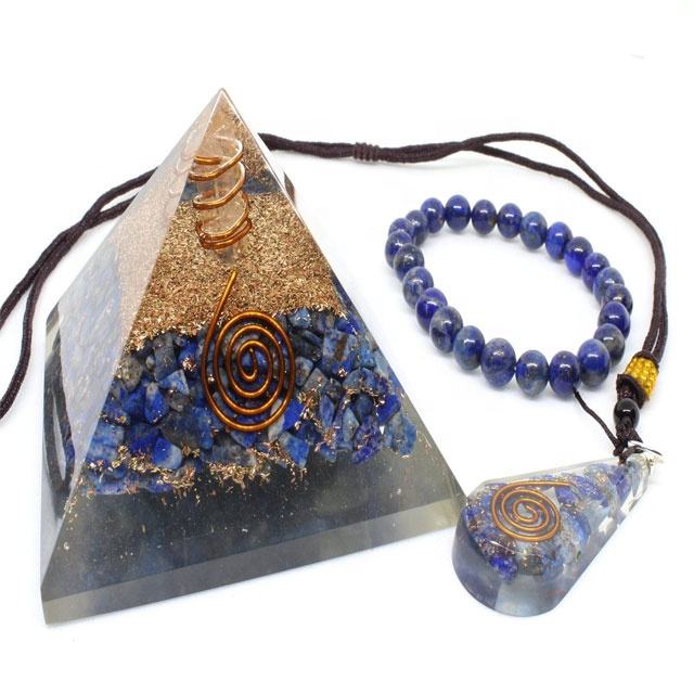 Wholesale Set Handmade Natural Stone Lapis Lazuli Bracelet Pendant Resin Energy Crystal Crafts Egg Feng Shui Gemstone Mascot