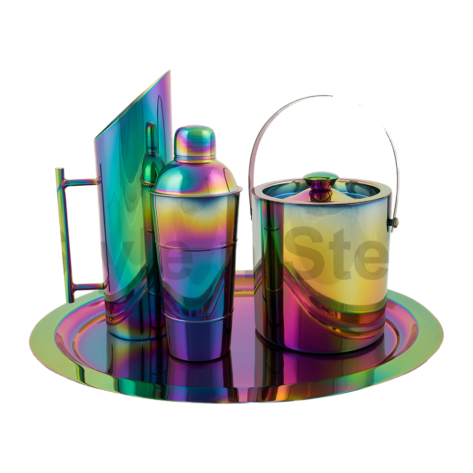 Wholesale Set of 4 Stainless Steel Bar Accessories Water Jug Cocktail Shaker Ice Bucket with Tray Wine Jug in 4 Colors