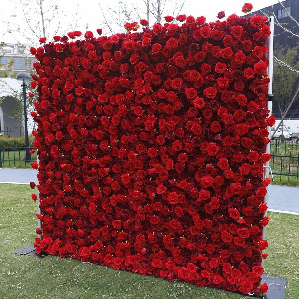 Wholesale Silk Flower Wall Panel Roll up Flower Wall Backdrop 8ft X 8ft red Rose Wedding Flower Wall Backdrop