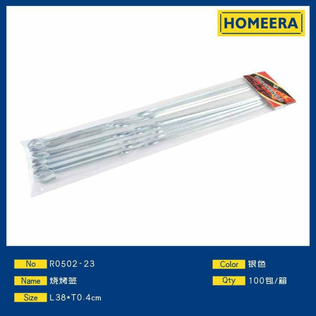 Wholesale Silver Iron 38x04cm BBQ Forks Stainless Steel Skewers 206g Camping Tool Set for Outdoor Grilling and BBQ