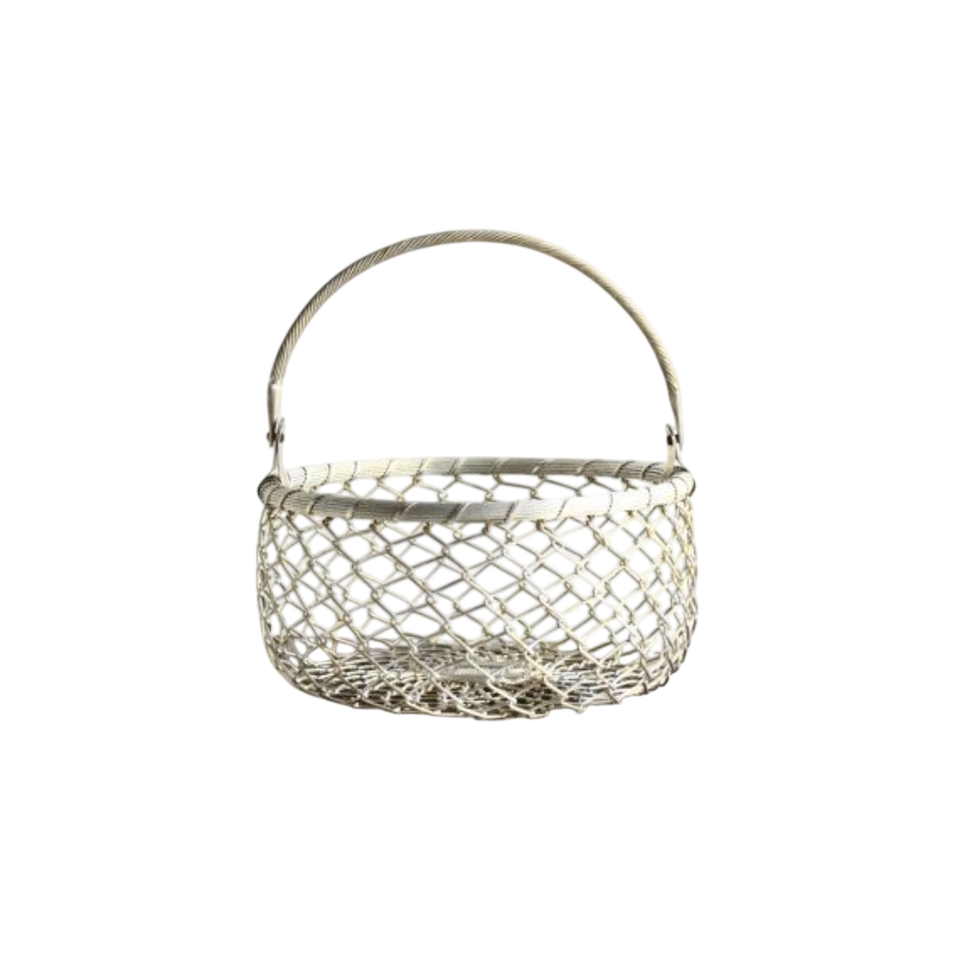Wholesale Silver Metal Wire Storage Basket With Handle Decorative Chain-Link Design Round Iron Basket For Home Decor And Display