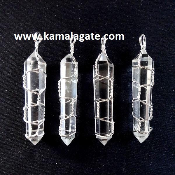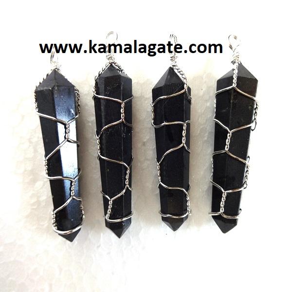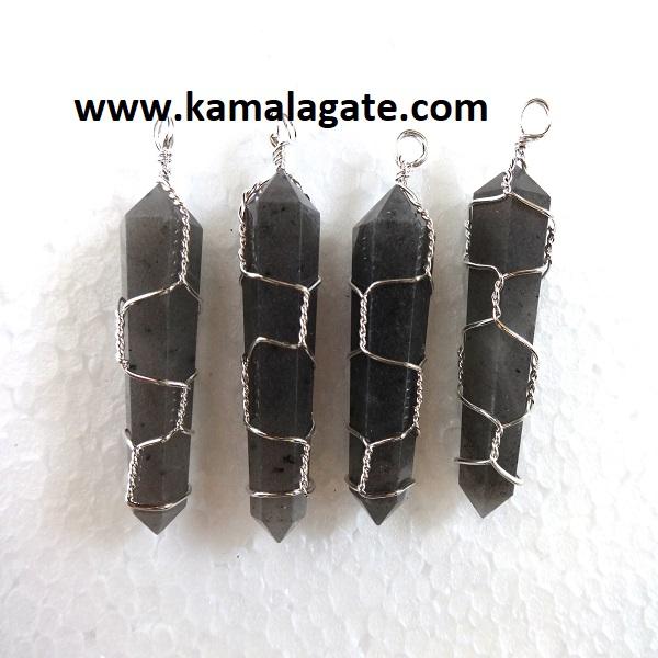 Wholesale Silver Plated Labrodolite Double-Point Pencil Wire Wrap Crystal Healing Pendant Gemstone Stone Pendant Fashionable