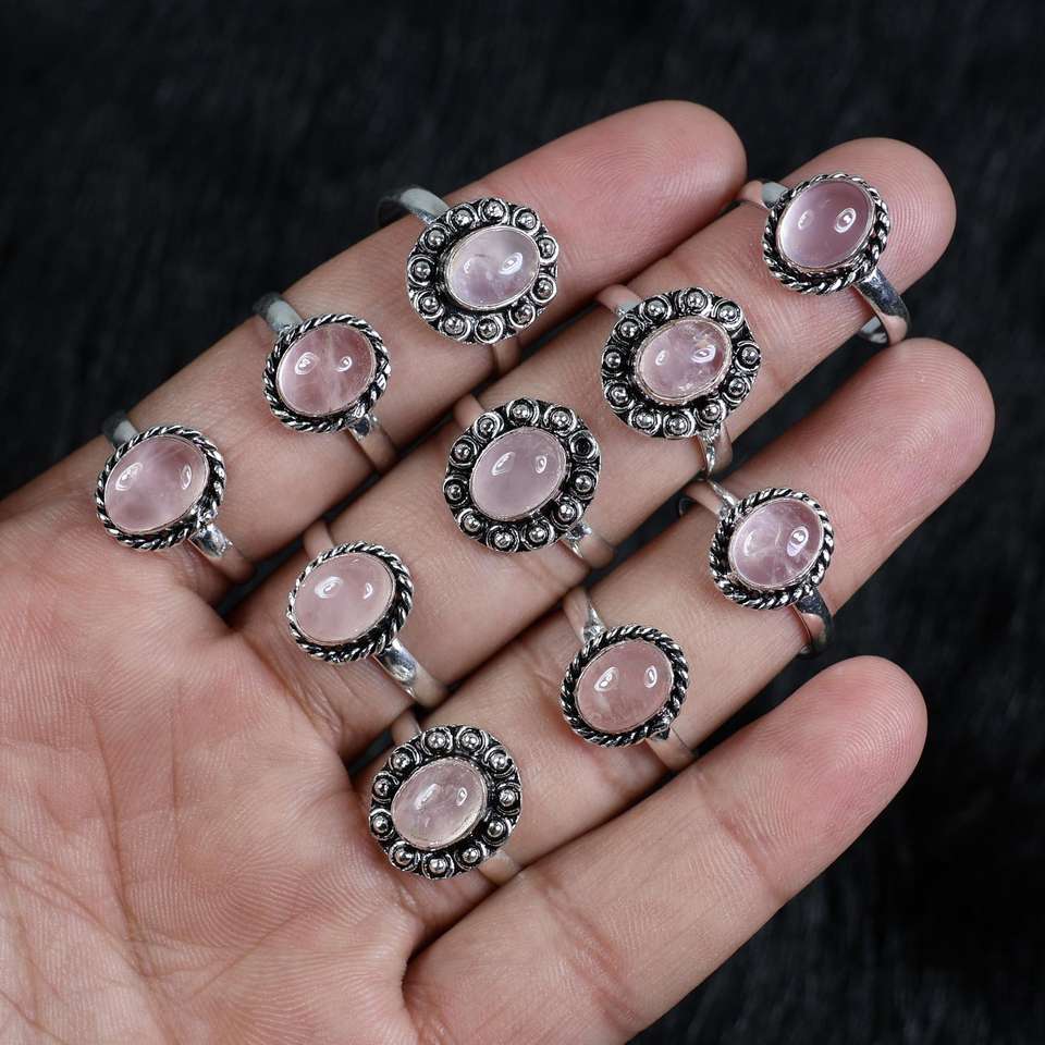 Wholesale Silver Plated Rose Quartz Ring for Women Engagement and Wedding Jewelry with Cabochons Designer's Choice