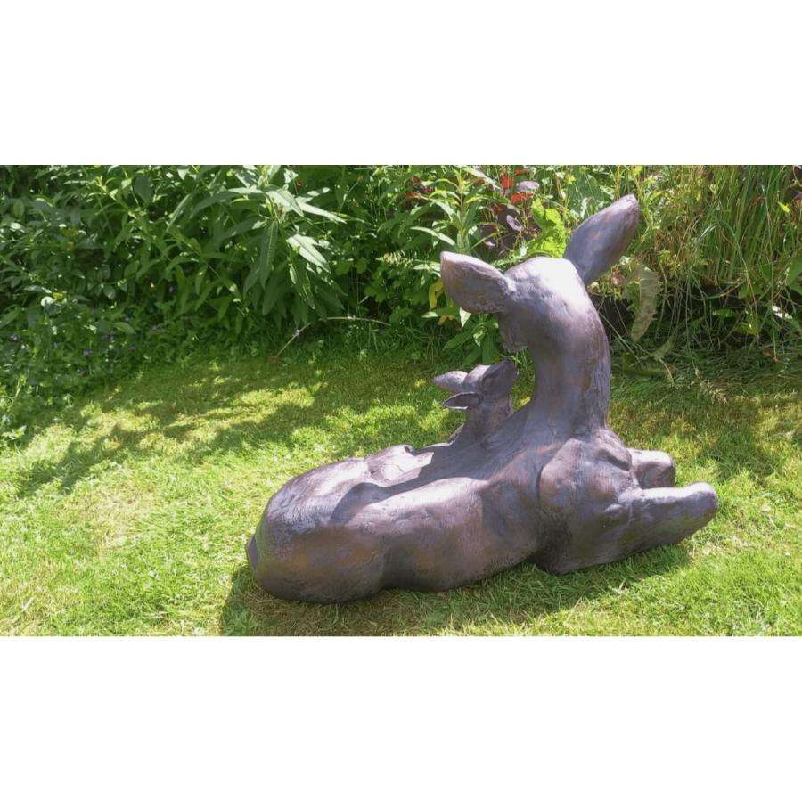 Wholesale Sitting Bronze Reindeer With Fawn Sculpture Garden Sets Farmhouse Supplies Outdoor Decoration Antique Deer Figurine
