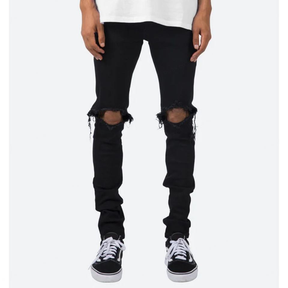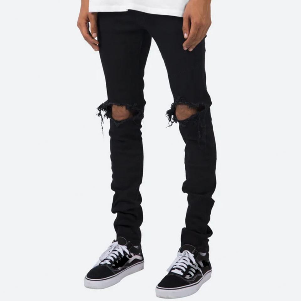 Wholesale Skinny Fit Custom Distressed Hole Vintage Black Washed Denim Jeans Men