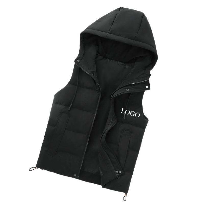 Wholesale Sleeveless Quilted Puffer Jacket Men Custom Canvas Fabric Windproof Lightweight Padded Stand Collar Front Logo Winter