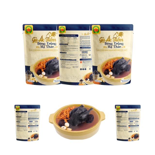 Wholesale Slow-cooked Black Chicken With Cordyceps Nutritious Soup Ready to Eat Mre ISO HACCP 350g OEM 24ps Healthy Food Vietnam