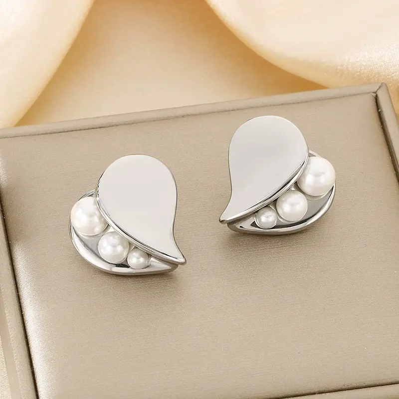 Wholesale Smooth Heart Bevel Asymmetrical Pearl Earrings for Women Niche Stainless Steel Heart-shaped Accessories