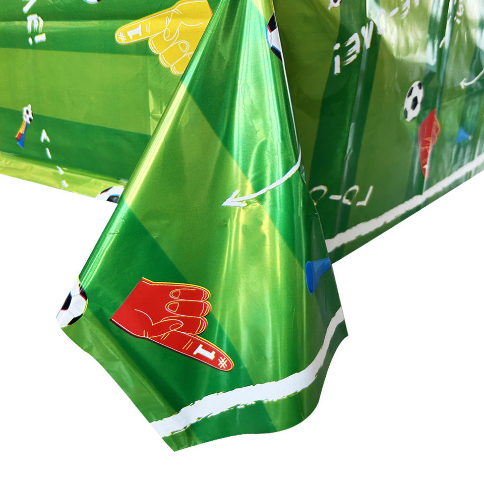 Wholesale Soccer Themed Green Disposable Tablecloth Football Field Striped Boys' Birthday Party Single Outdoor Event