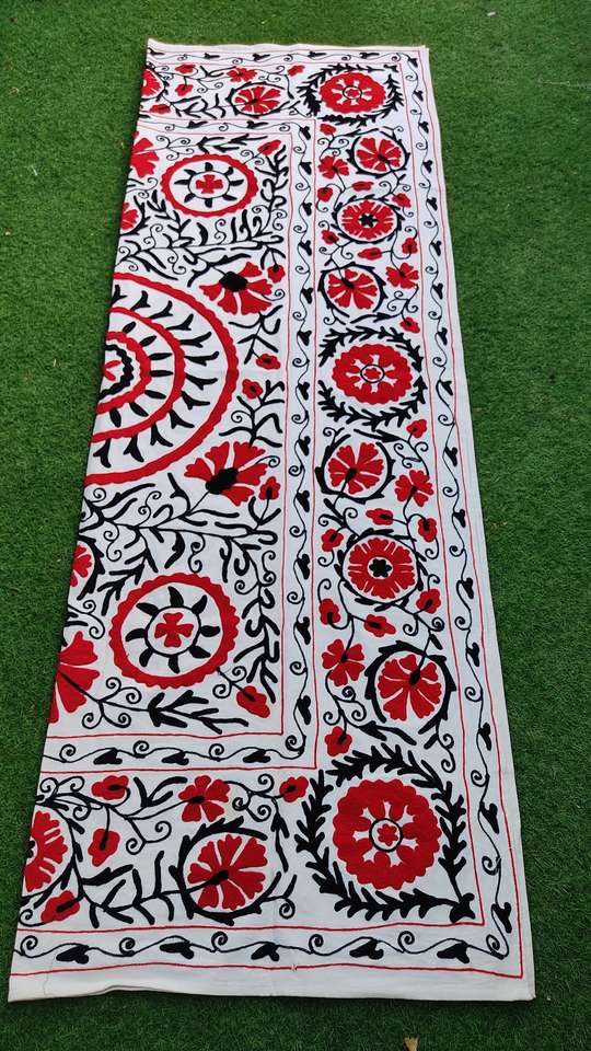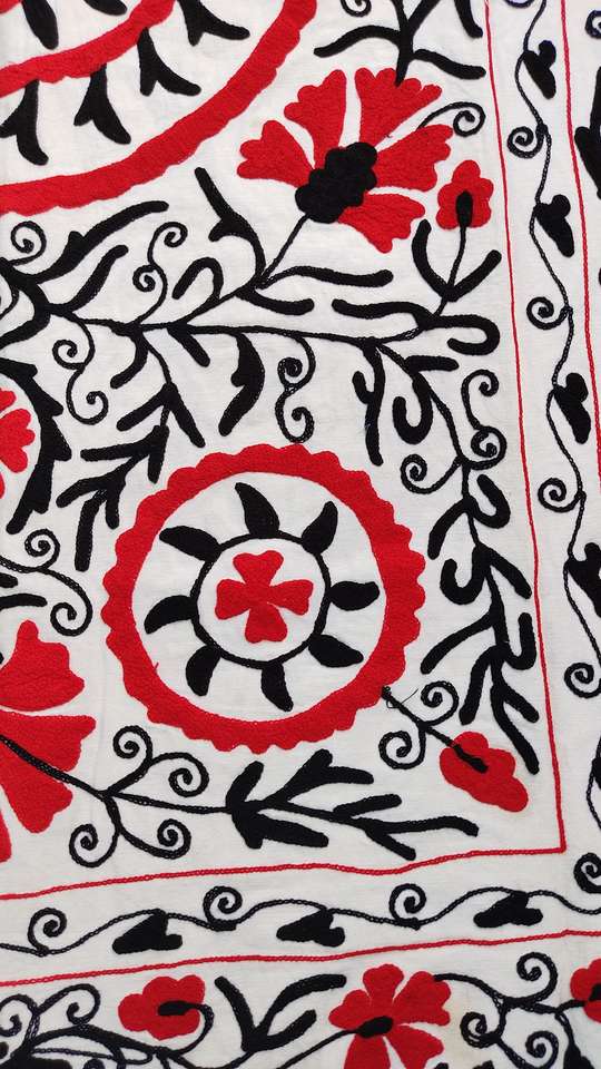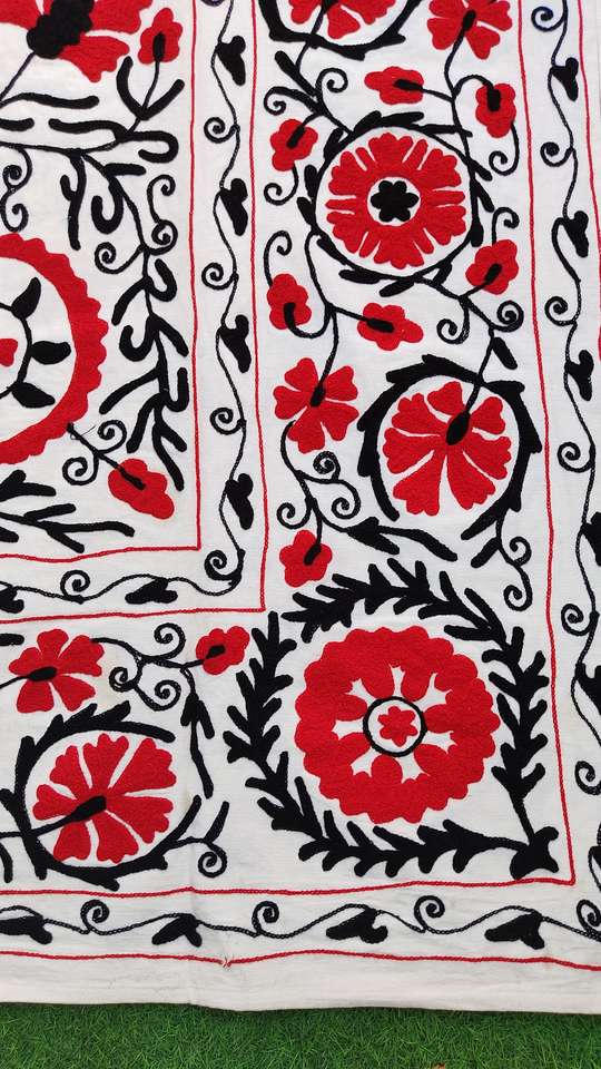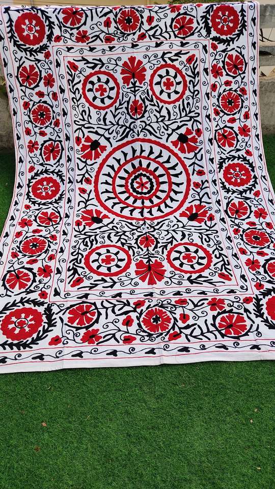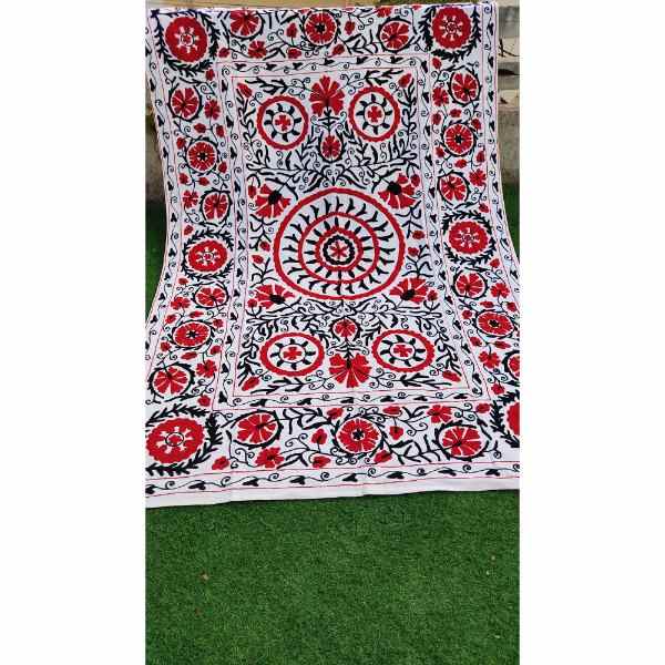 Keywords:Traditional Uzbek Suzani Embroidered Bed Sheet