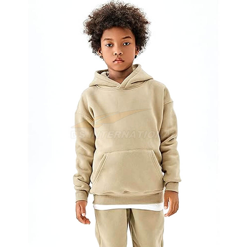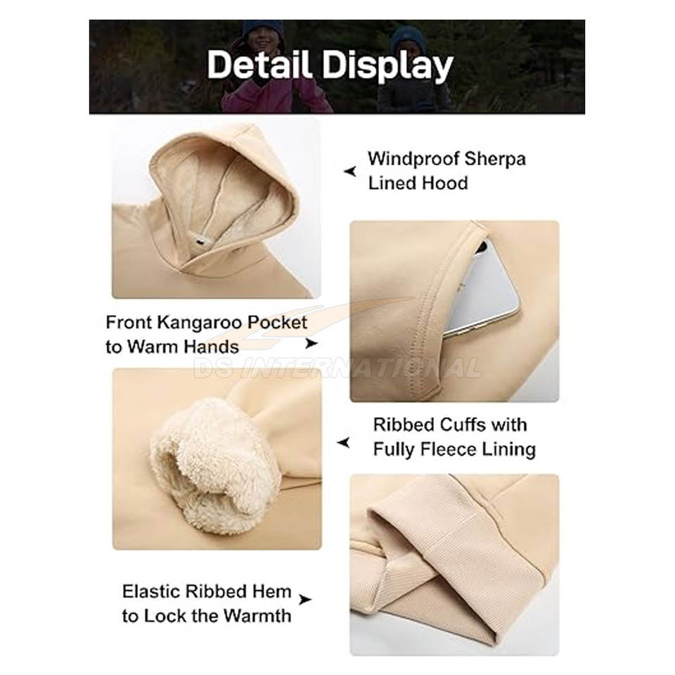 Wholesale Soft Sherpa Fleece Hoodie for Kids Warm Winter Pullover Hooded Sweater Everyday Wear Khaki Color