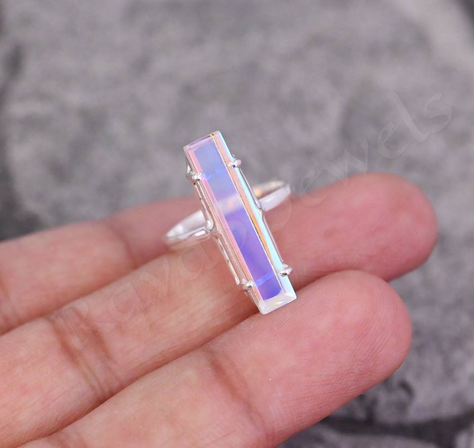 Wholesale Solid 925 Stamp Sterling Silver Customized Prong 6x18mm Rectangle Maystic Quartz Gemstone Ring for Women Weddings