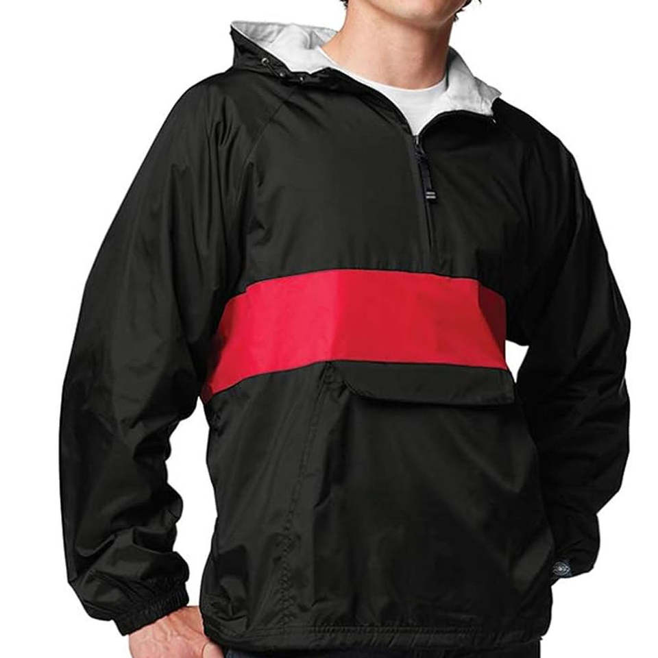 Wholesale Solid Black Color Waterproof Rain Jacket Custom Design Front Pocket Oversize Quarter Zipper Windbreaker Jacket For Men