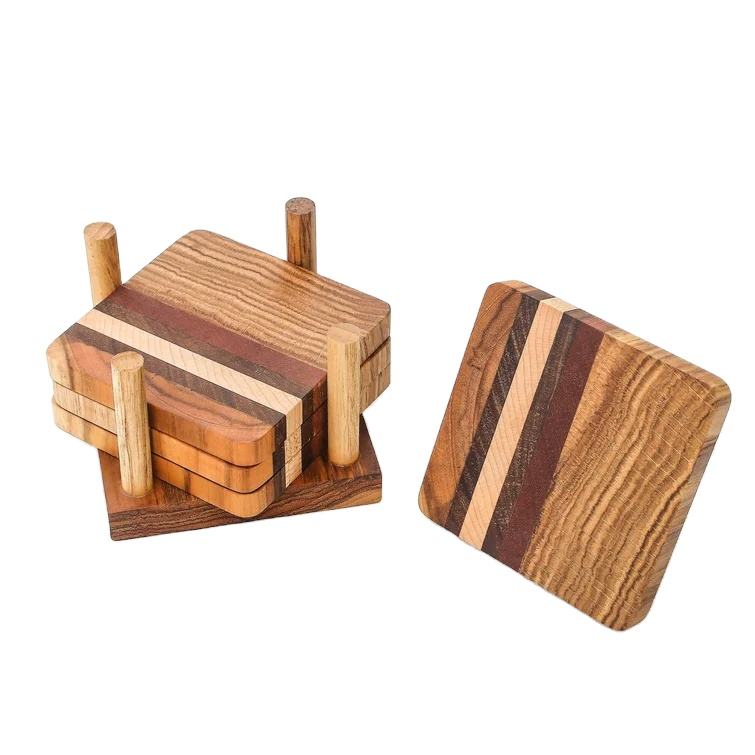 Wholesale Solid Wooden Tea & Beer Coaster Set Customizable 4/6 Pcs Square Mat/Pad High Quality Direct Factory Price