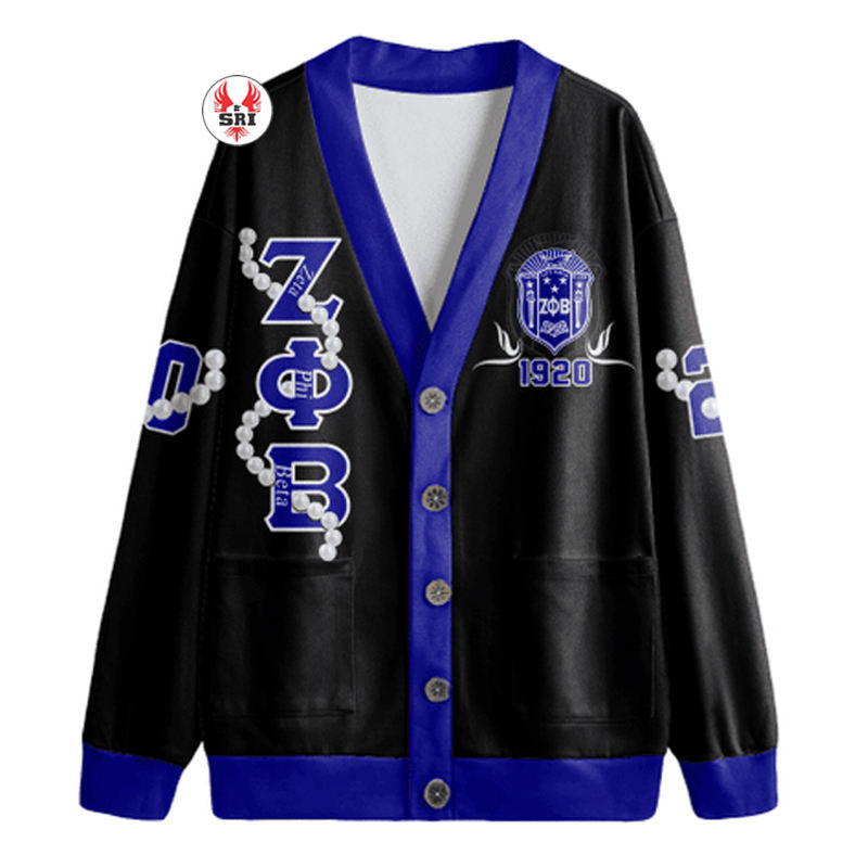 Wholesale Sorority Cardigan Sweater Zeta Phi Beta Black Knit Custom Embroidered Greek Life Apparel Factory Supplier