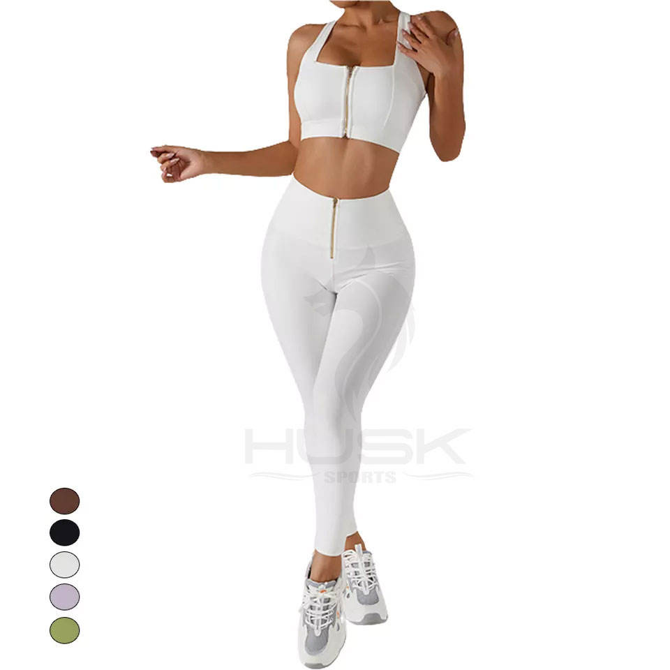 Wholesale Sportswear Set Sexy Sports Crop Top Zipper High Waist Leggings Yoga Set Active Wear Workout Gym Fitness Sets for Women