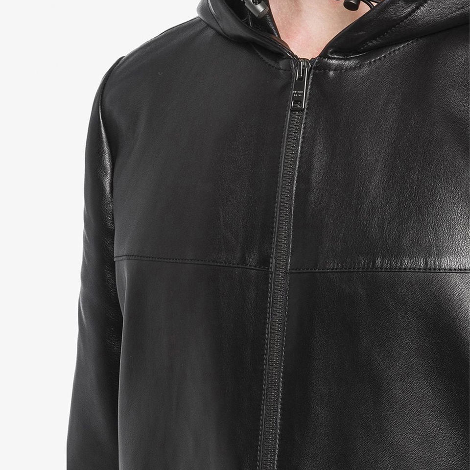 Wholesale Spring Autumn Men's Fashion Hooded Leather Jacket Coat Tops Zipper Long Sleeve Slim Motorbike Leather Jacket