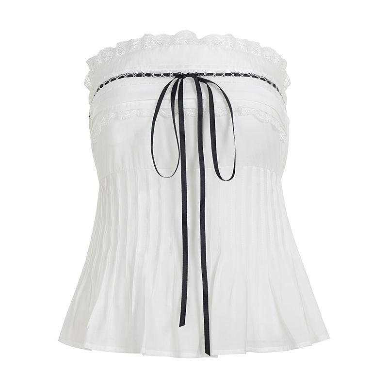 Wholesale Spring Summer Women Strapless Tube Top Lace Bow Tie Waist Slim Fit Sweet Girl Style