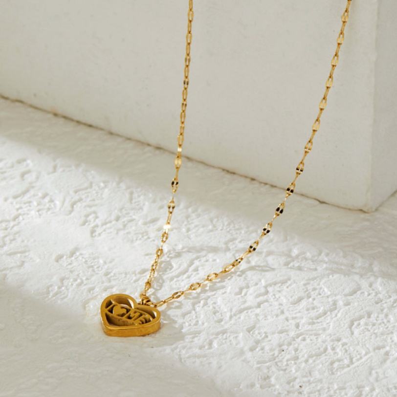 Wholesale Stainless Steel 18K Gold Plated Anti Tarnish Custom Stylish Heart Pendant Necklace for Women