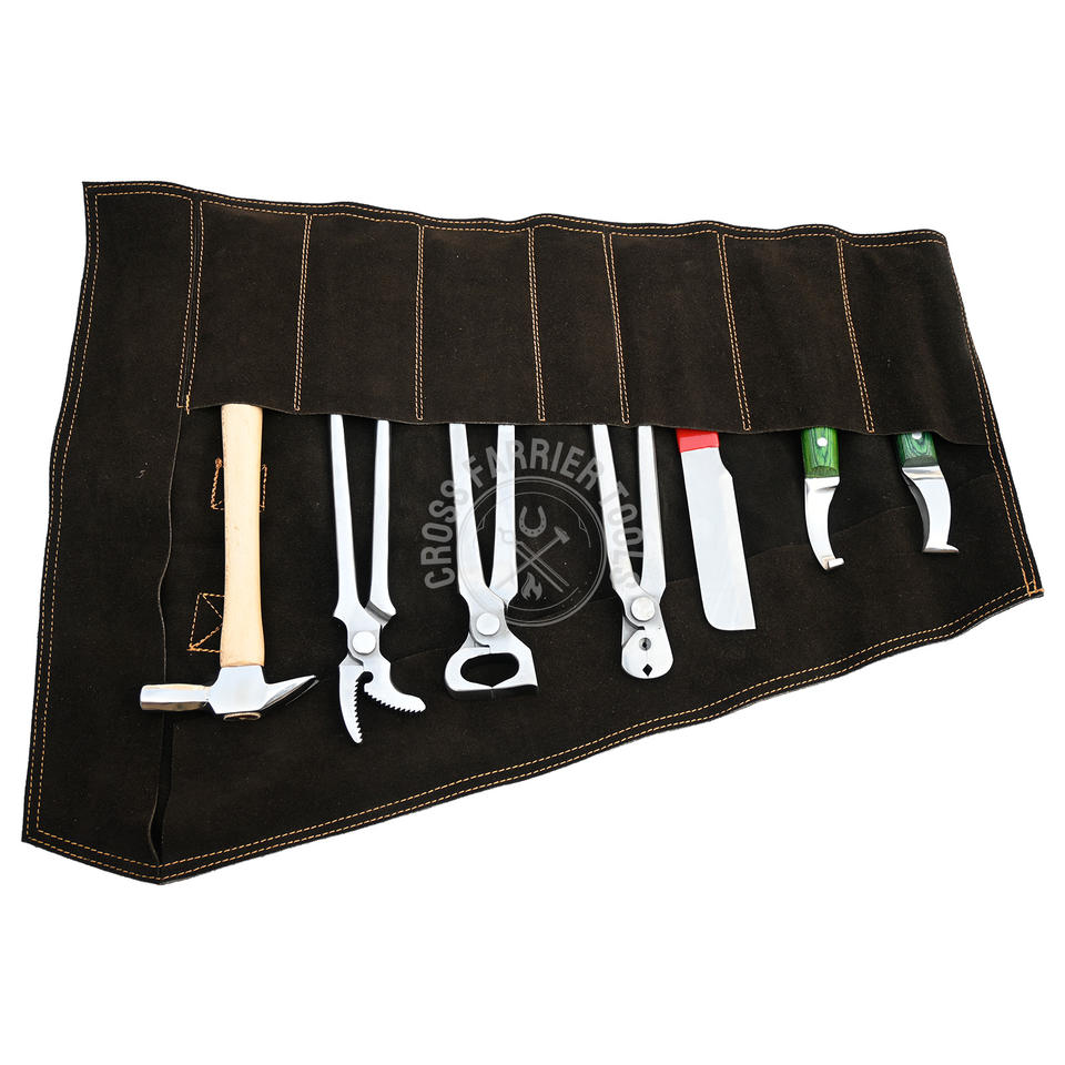 Wholesale Stainless Steel Black Leather Farrier Tool Kit Nail Nipper Clincher Puller Dual Side Loop Knife Curved Hoof Horseshoes