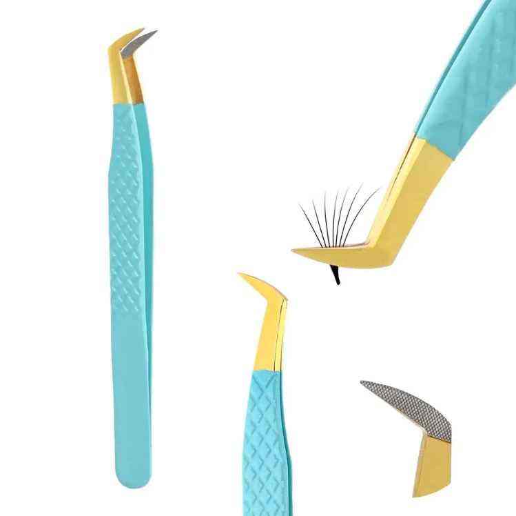 Wholesale Stainless Steel Eyelash Tweezers Tools Fiber Tip Grafted Lash Tweezers for Eyelash Extension Gold with Turquoise Color