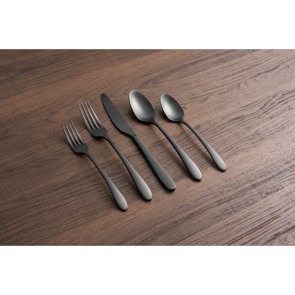Best Price 5pcs Kitchen Stainless Steel Mirrored Cutlery Set Black Plated Chef Knife Fork Spoon with Thick Handle for Parties
