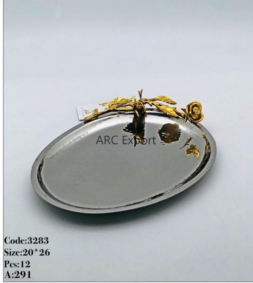 Premium Quality Stainless Steel Hammered Food Serving Bowl Luxury Silver Color Round Shape Fancy Serving Tray and Platters