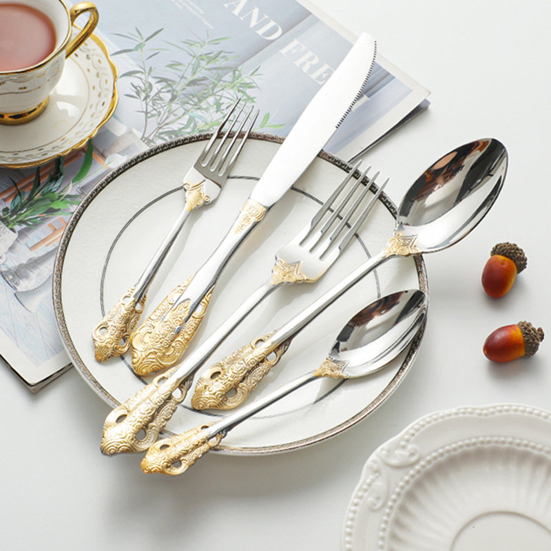 Wholesale Stainless Steel Mirrored Silver & Gold Cutlery Set Knife Spoon Fork Wedding & Kitchenware Flatware Set