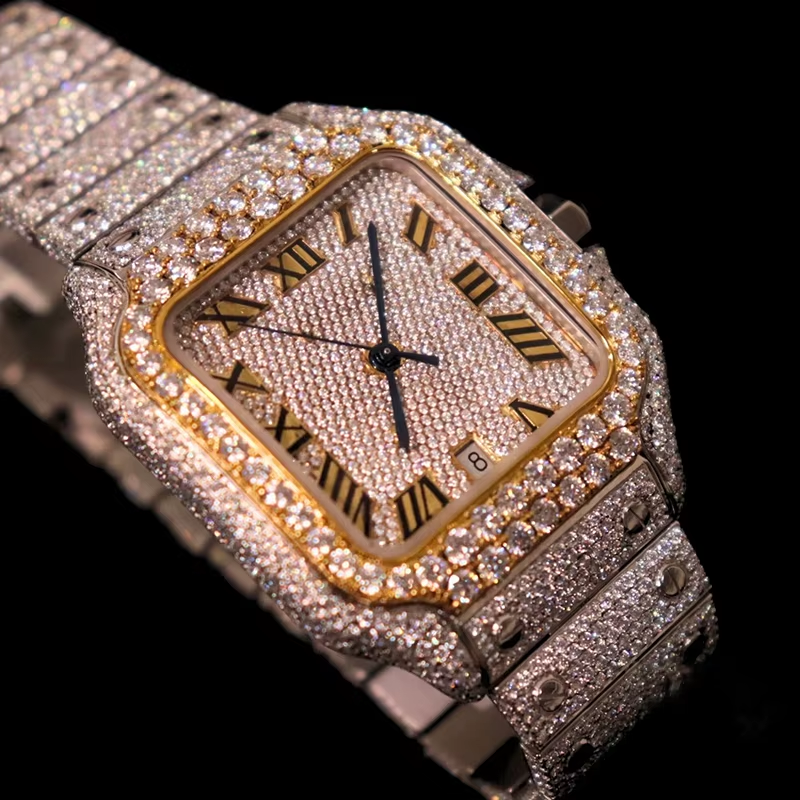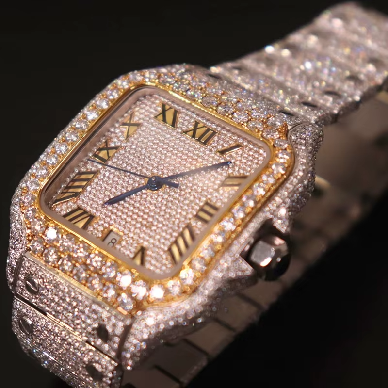 Wholesale Stainless Steel Roman Dial Bust Down Automatic WatchFully Iced Out Moissanite Diamond Studded Watch