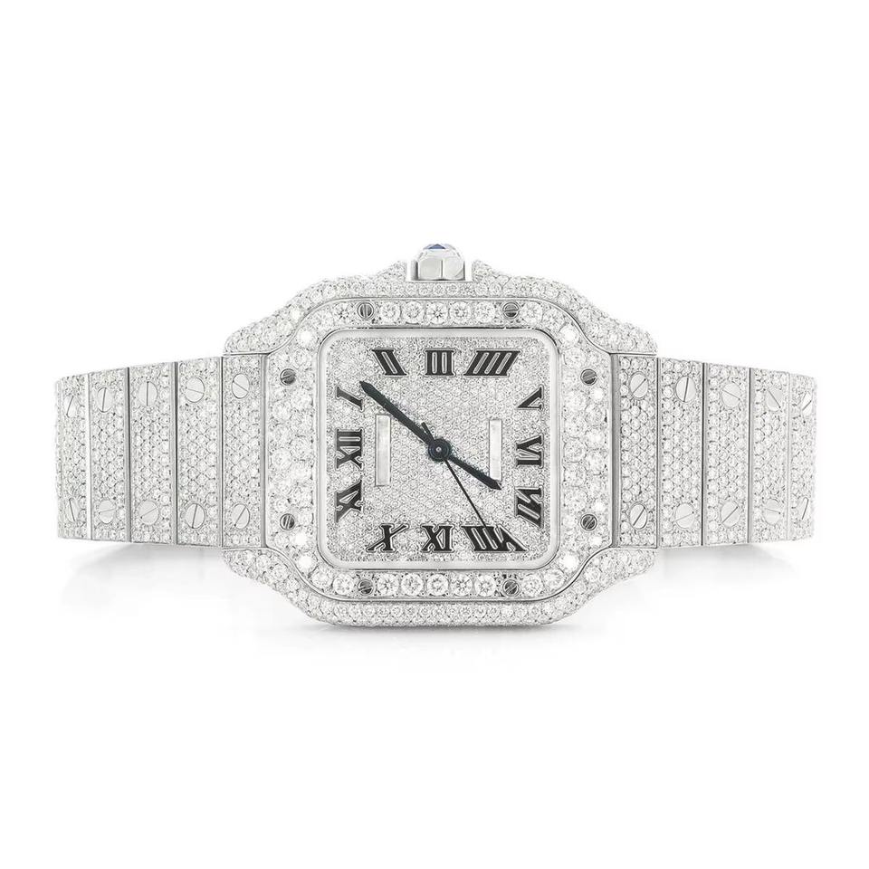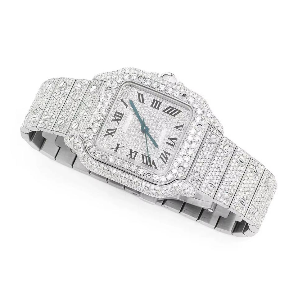 Wholesale Stainless Steel Square Hip Hop Iced Out Quartz Watch with Glass Dial Luxury Fashion Jewelry