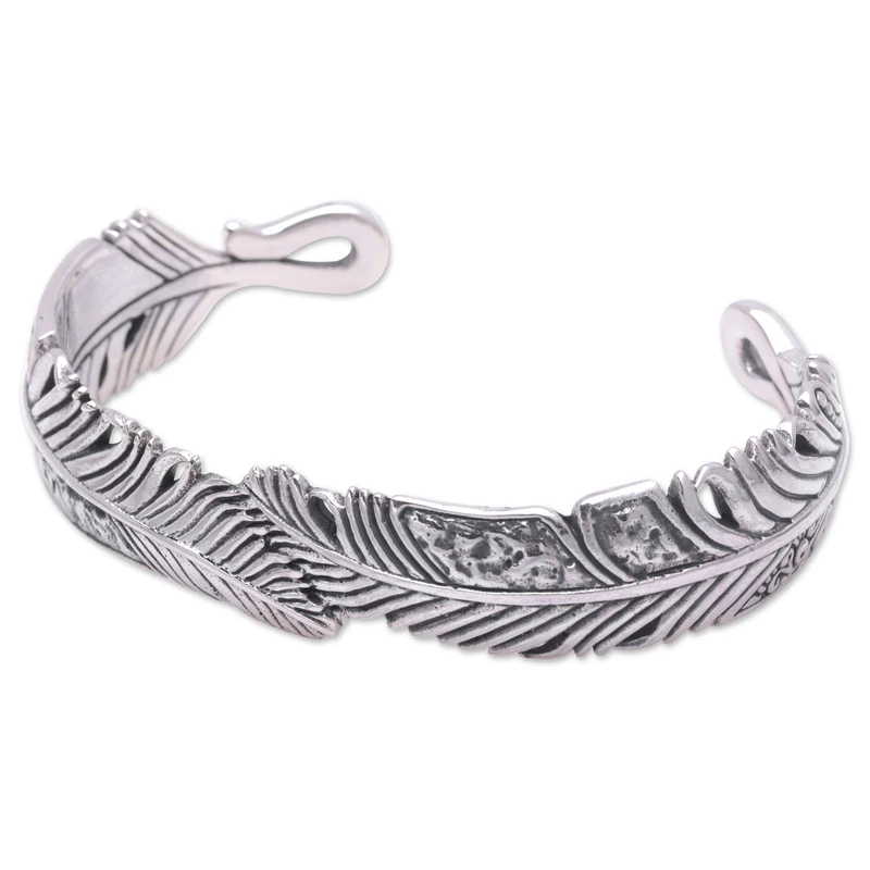 Wholesale Sterling Silver Feather Cuff Bracelet Boho Adjustable Bangle Handmade Jewelry Nature Inspired Design Gift for Women