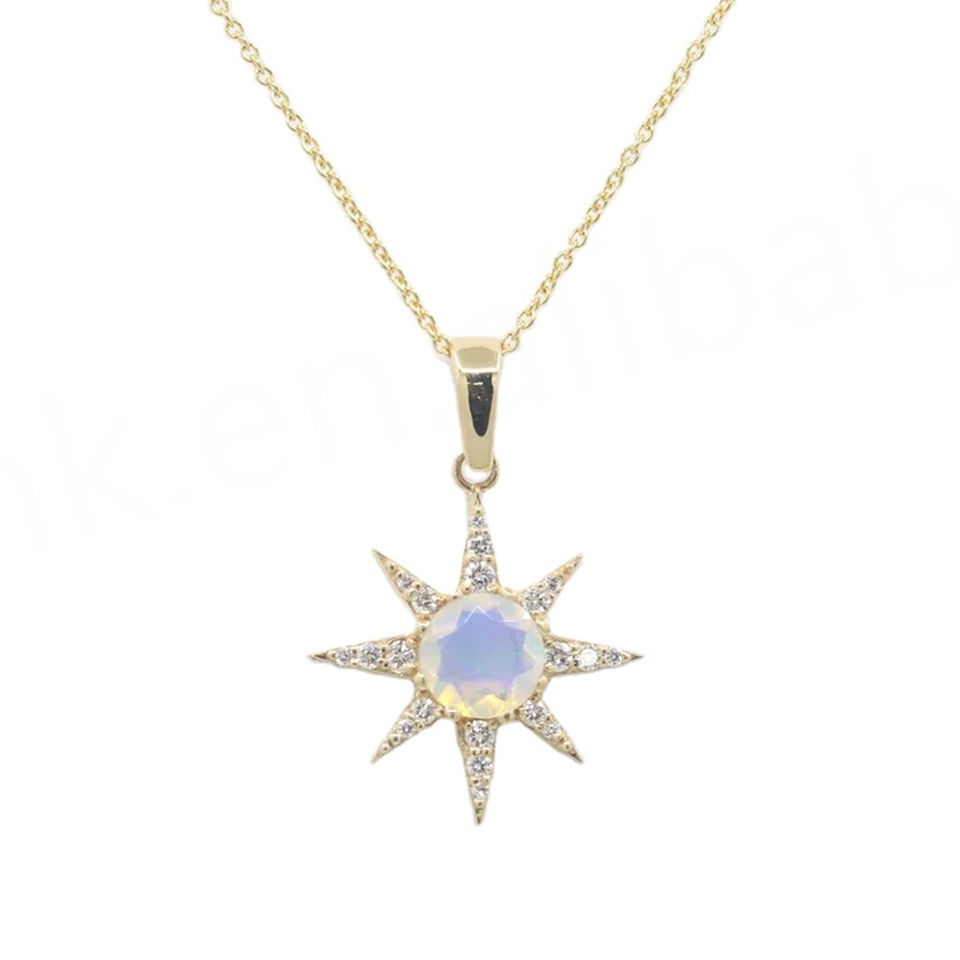 Wholesale Sterling Sliver Chain Natural Moonstone Necklace Luxury Moonstone Jewelry Sunshine Shape Pendant