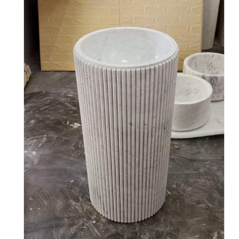 Wholesale Stock Freestanding Volakas White Marble Rectangular Pedestal Basin for Bathroom Hospital or Bedroom