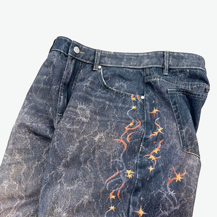 Wholesale Straight Stylish Casual Soft 3D Digital Printing Men Denim Jeans Unisex Pants
