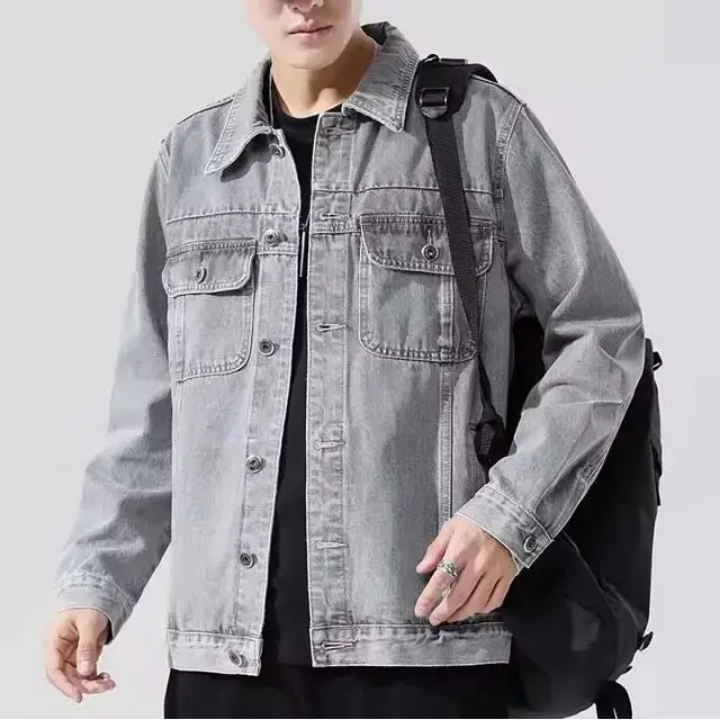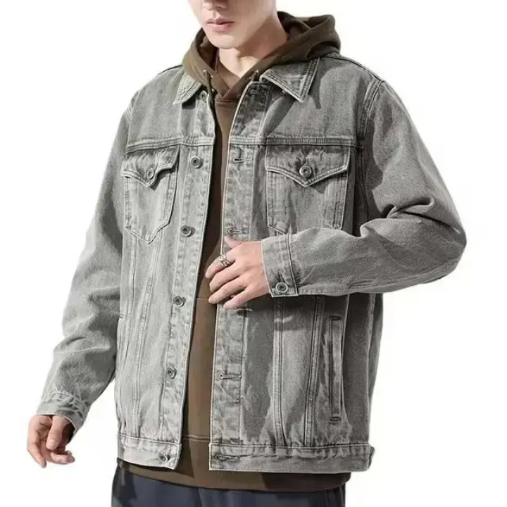 Wholesale Street Wear Breathable Casual Vintage Distressed Acid Washed Denim Jean Jacket for Men