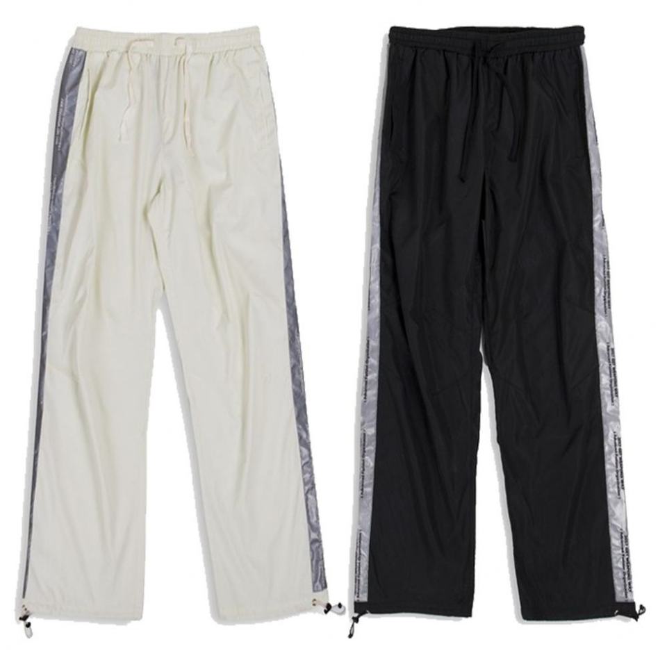 Wholesale Street Wear Casual Plaid Unisex Loose Nylon Trousers With Reflective Side Stripes Drawstrings Track Jogger Pants Men