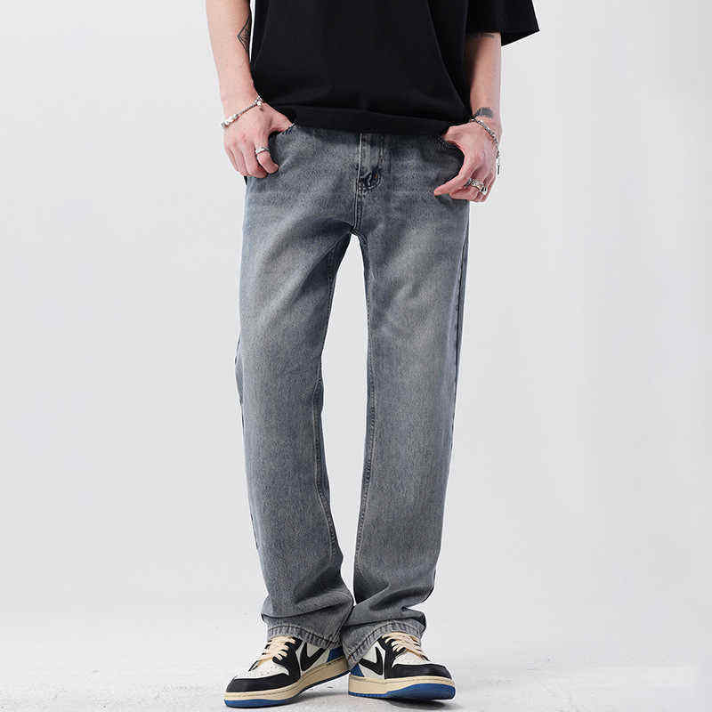 Wholesale Street Wear Stylish Men's Straight Jeans Pants Breathable slim Fit Solid White Washed Pattern Button Decoration