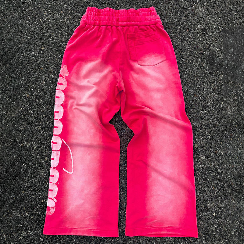 Wholesale Streetwear 100% Cotton Fleece Trouser Baggy Wide Leg Pants Vintage Sun Faded Double Waist Sweatpants for Men