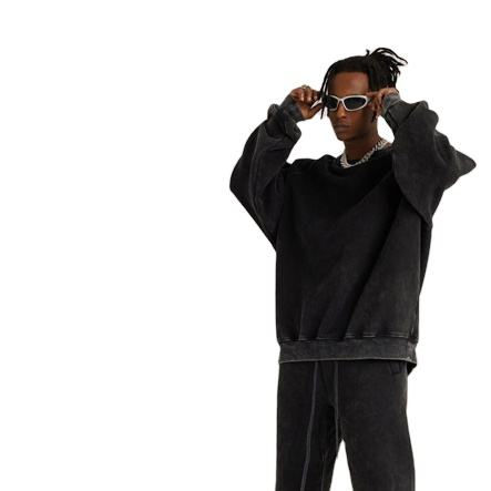 Wholesale Streetwear Heavyweight Oversized Men Sweatshirts High Street Blank Oversized Vintage Cotton Sweatshirts for sale