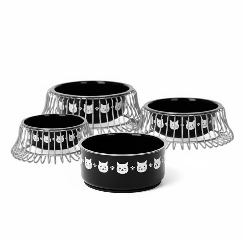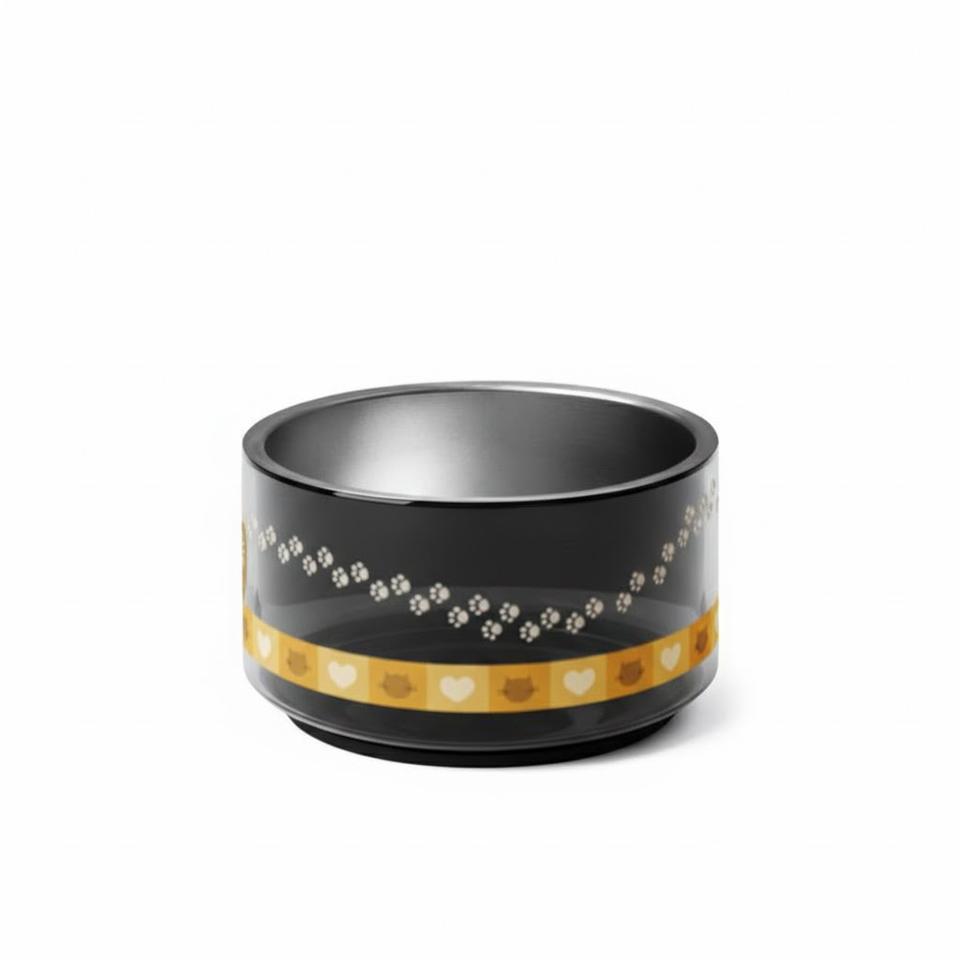 Wholesale Stylish Black Pet Bowl With Paw Print And Heart Design For Cats And Small Dogs Easy-Clean Glazed Feeding Dish Supply