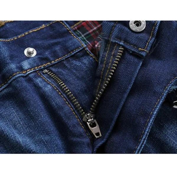 Wholesale Stylish Light Blue Denim Jeans Straight Slim Men Mid Rise Winter Casual Plaid Pattern Eco-Friendly Distressed 100%