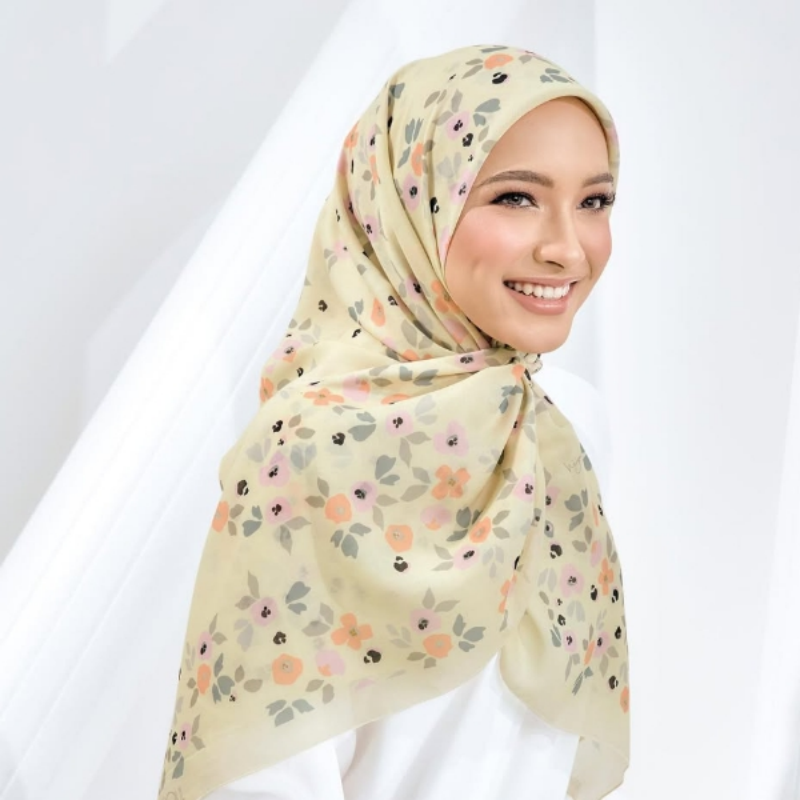 Hijab, square ,polyester , Printed ,Floral Print cotton voile hijab