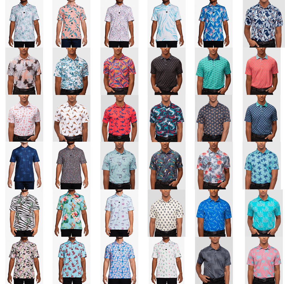 Wholesale Sublimation Printing Mens UPF 50+ Hawaiian Printed Performance Golf Tshirts T-shirts Polo Shirts Polyester Spandex