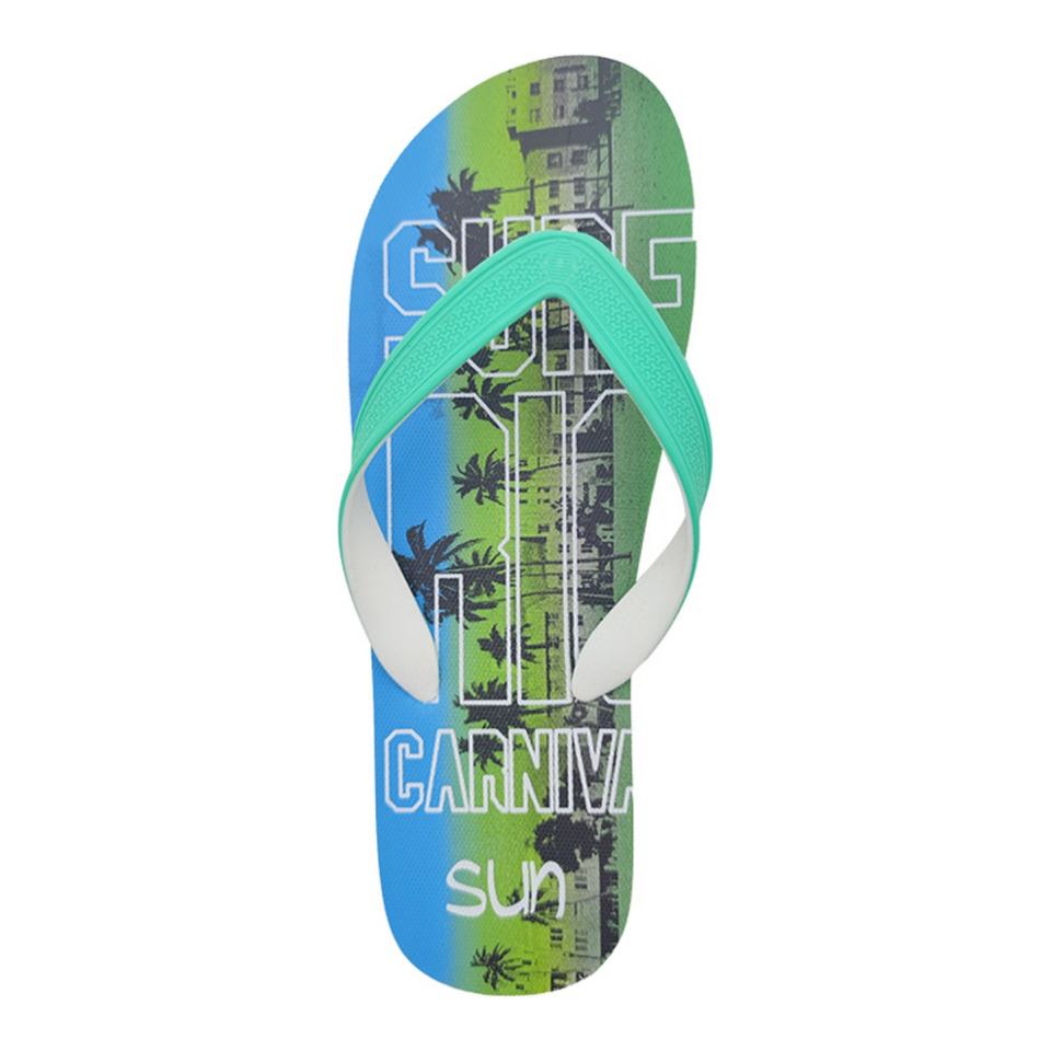 Wholesale Summer Beach Flip Flops Men City Palm Print Sandals Two Tone Strap Soft PE Rubber Slippers Custom Logo