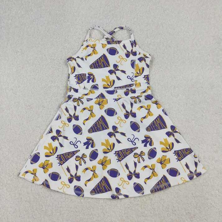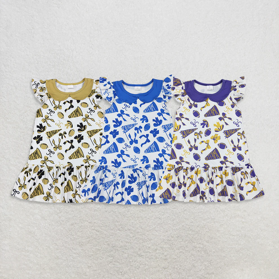 Wholesale Summer Dresses 3 Colors Baby Girls Bows Footballs Go Team Active Knee Length Dresses