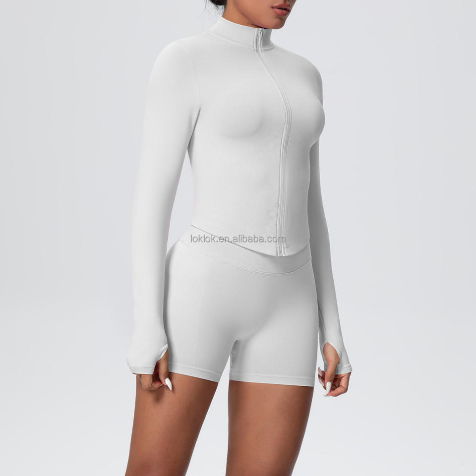 Wholesale Summer Fall Women Workout Fitness Gym Ribbed Soft Fabric Breathable Plus Size Zipper Yoga Jacket Coat Top Quick-Drying