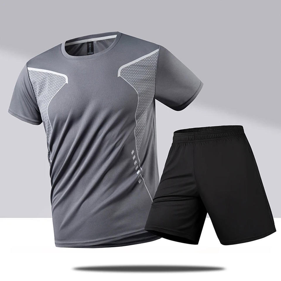Wholesale Custom Men's Plus Size Summer T-Shirt Set Cotton Running Shorts with Side Stripe Men's Comfortable Clothing
