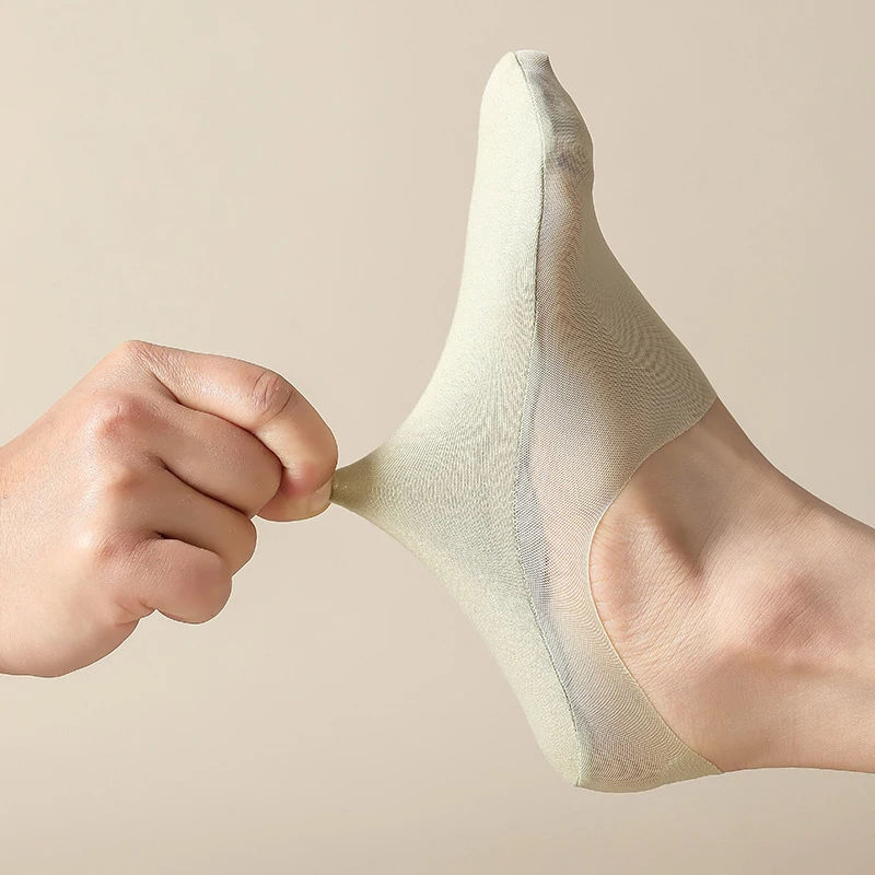 Wholesale Ice Silk Summer No Show Socks Men Cotton Bottom Transparent Won't Fall Thin Non-Slip Breathable Deodorant Daily Wear